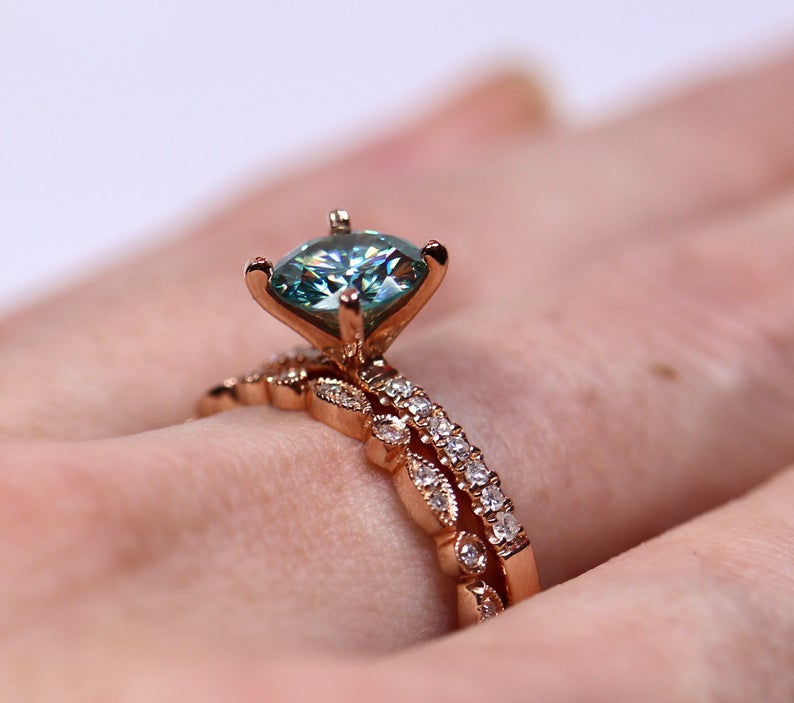 2.5 Carat Blue Round Cut Diamond Engagement Ring for Women, Bridal Set Wedding Ring, Anniversary Gifts