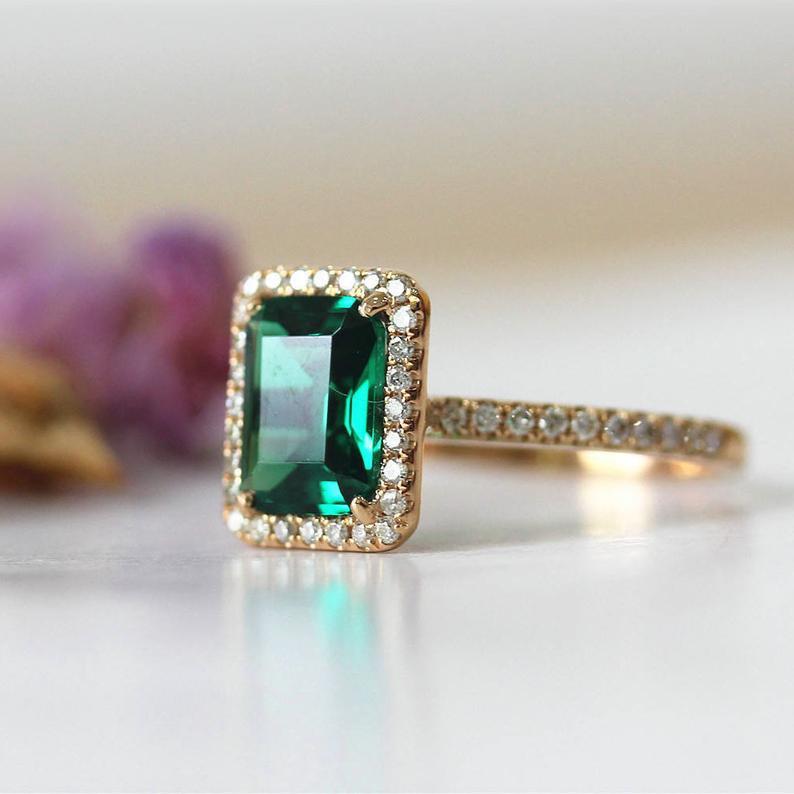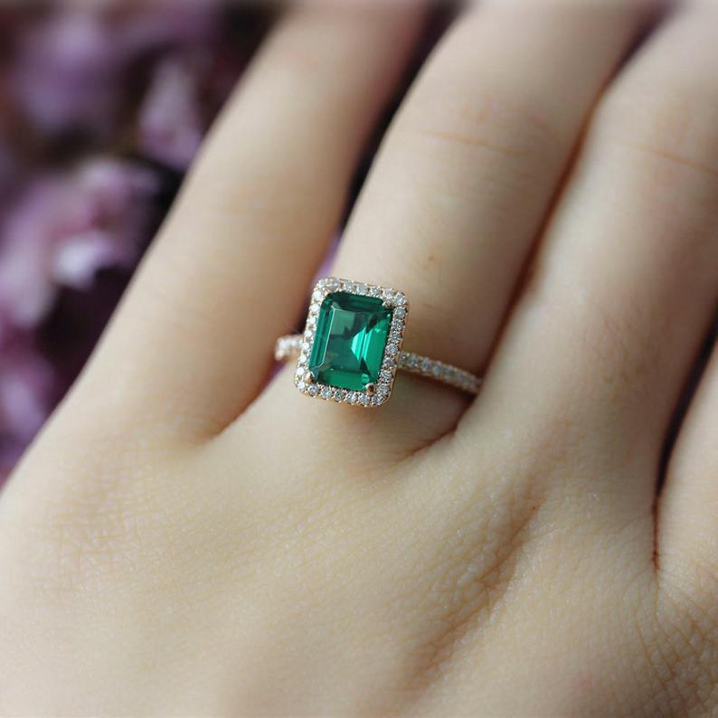 2.5 Carat Green Emerald Cut Diamond Engagement Ring for Women, Wedding Ring