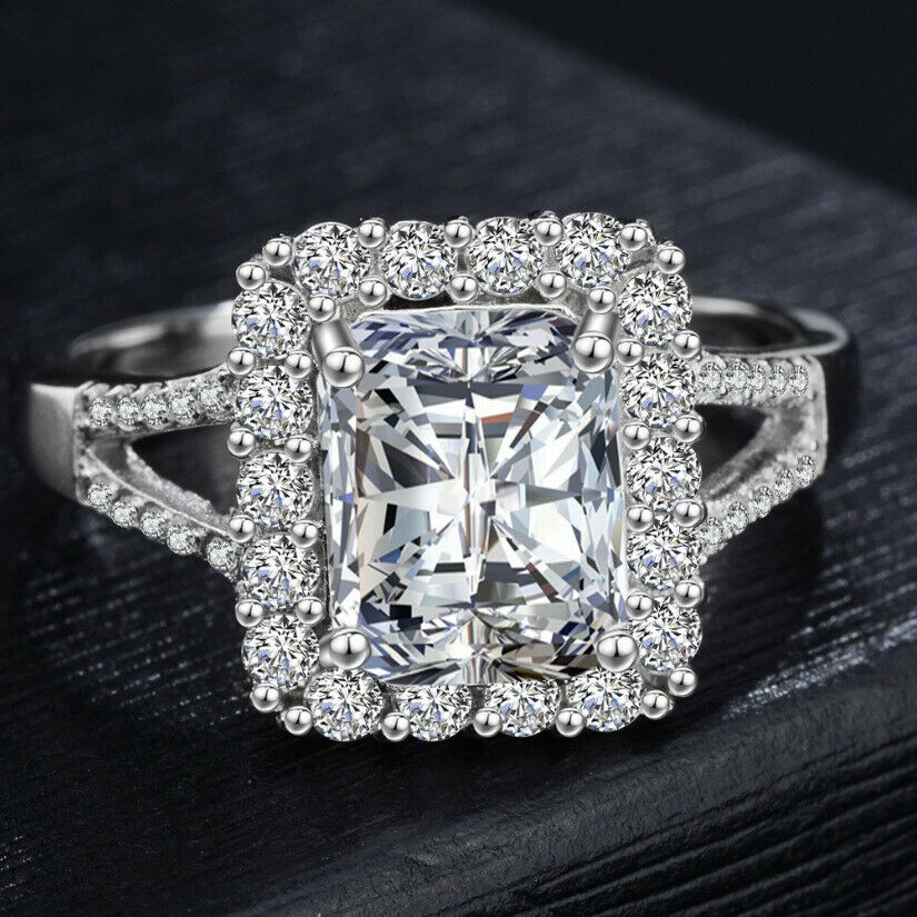 2 Carat Radiant Cut Diamond Wedding Ring for Women, Halo Engagement Ring, Anniversary Gifts, Christmas Gifts