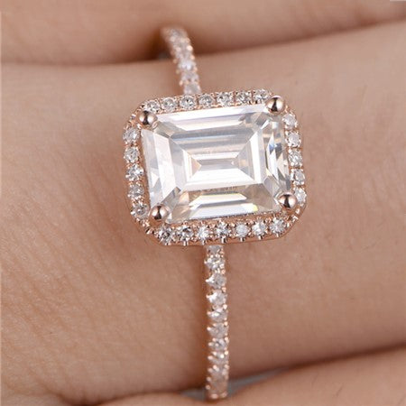 2 Carat Emerald Ring CVD Lab Grown Diamond Ring For Women, Halo Engagement Ring, Christmas Gifts, Wedding Ring, Promise Ring For Her