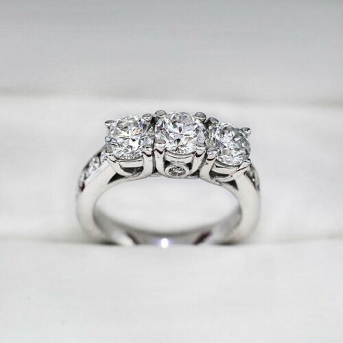 1.5 Carat Round Cut CVD Lab Grown Diamond Engagement Ring For Women, Three Stone Ring, Wedding Ring, Christmas Gifts