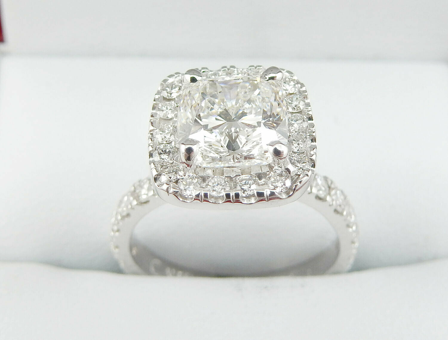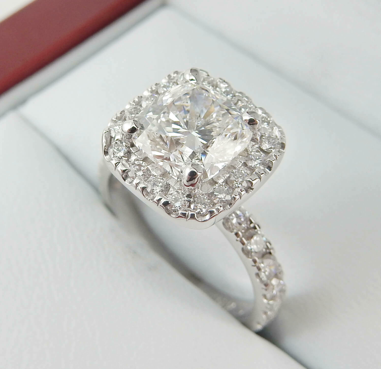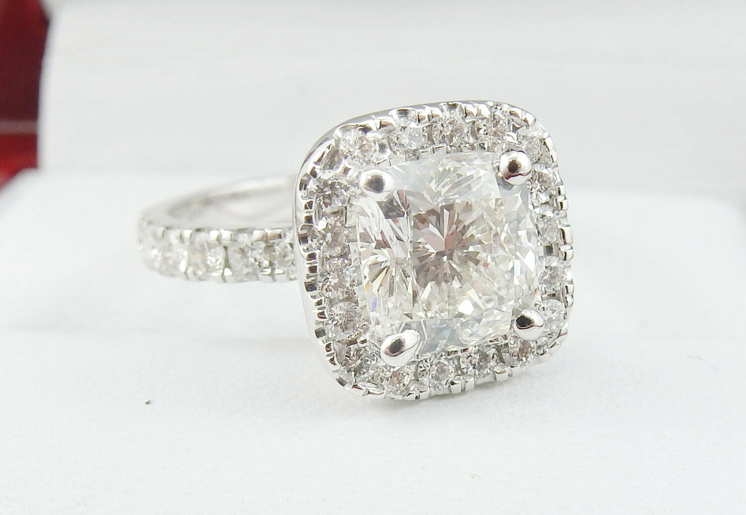 2 Carat Cushion Cut Diamond Engagement Ring For Women, Wedding Ring, Halo Ring Set