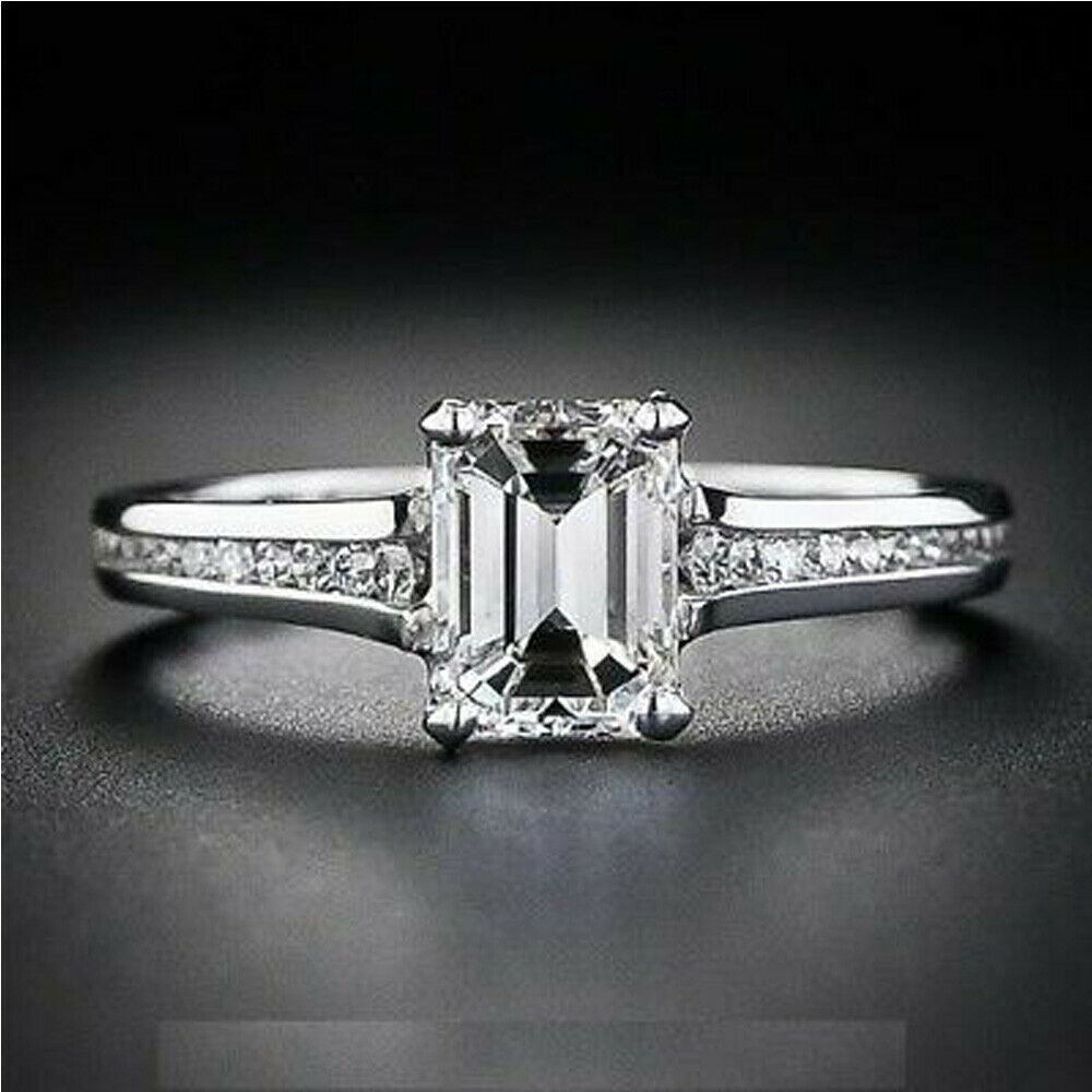 2 Carat Emerald Ring CVD Lab Grown Diamond Engagement Ring For Women, Solitaire Accents Anniversary Gifts, Wedding Ring