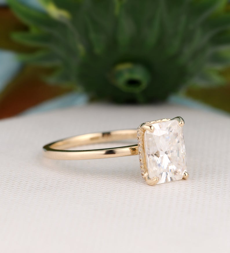 3 Carat Radiant Cut Diamond Engagement Ring for Women, Hidden Halo Wedding Ring, Christmas Gifts