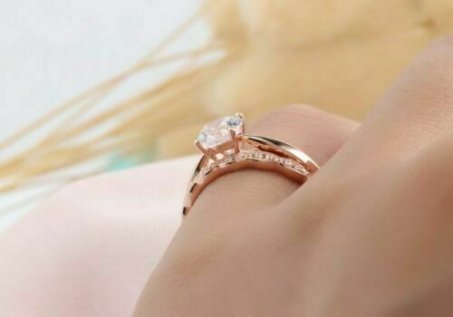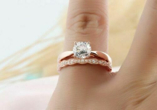 1.5 Carat Round Cut Diamond Engagement Ring for Women, Bridal Set Wedding Ring, Handmade Ring, Christmas Gifts