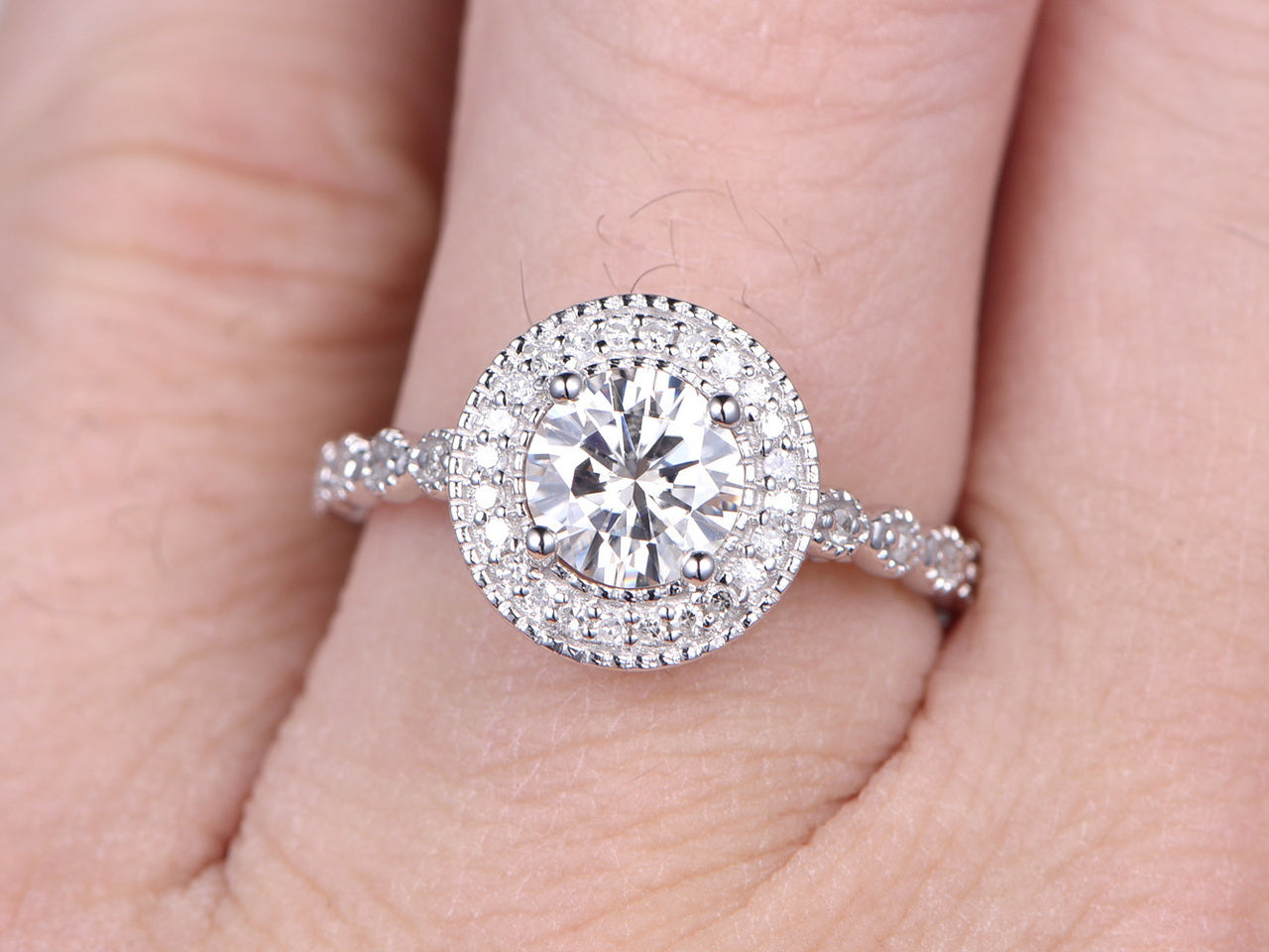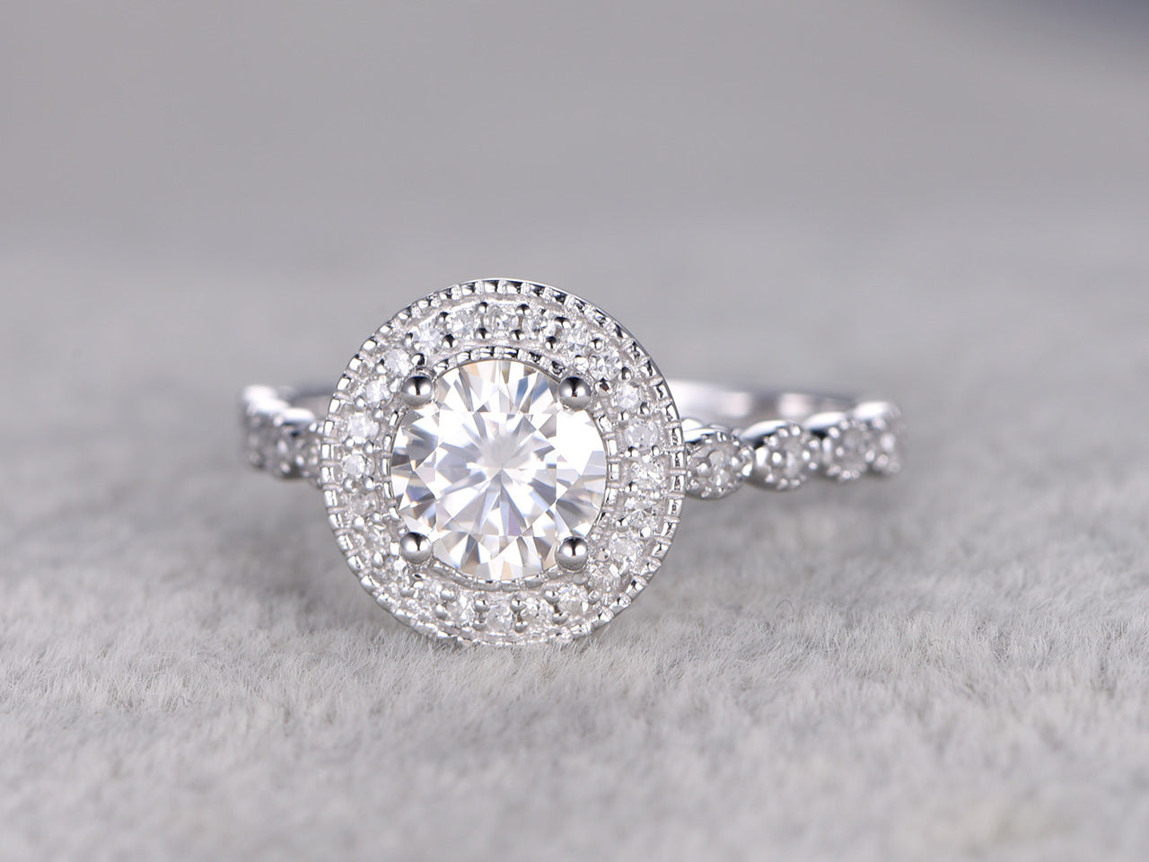1 Carat Round Cut Diamond Engagement Ring for Women, Halo Ring, Wedding Ring