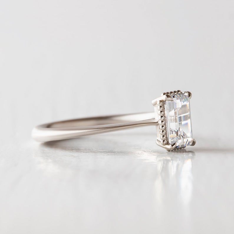 2 Carat Emerald Cut Diamond Engagement Ring for Women, Wedding Ring