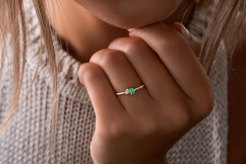 1 Carat Green Round Cut Diamond Engagement Ring for Women, Wedding Ring,Birthday Gift For Her