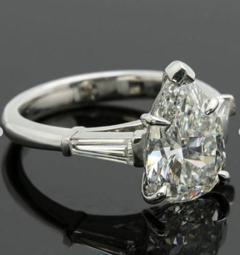 3.5 Carat Pear CVD Lab Grown Diamond Engagement Ring for Women, Three Stone Ring, Christmas Gifts, Wedding Ring
