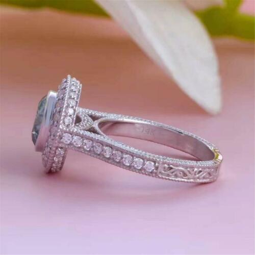 1 Carat Blue Round Cut Diamond Engagement Ring For Women, Wedding Ring, Halo Engagement Ring, Christmas Gifts