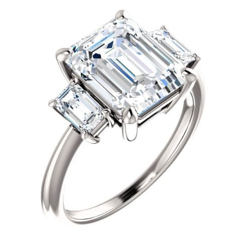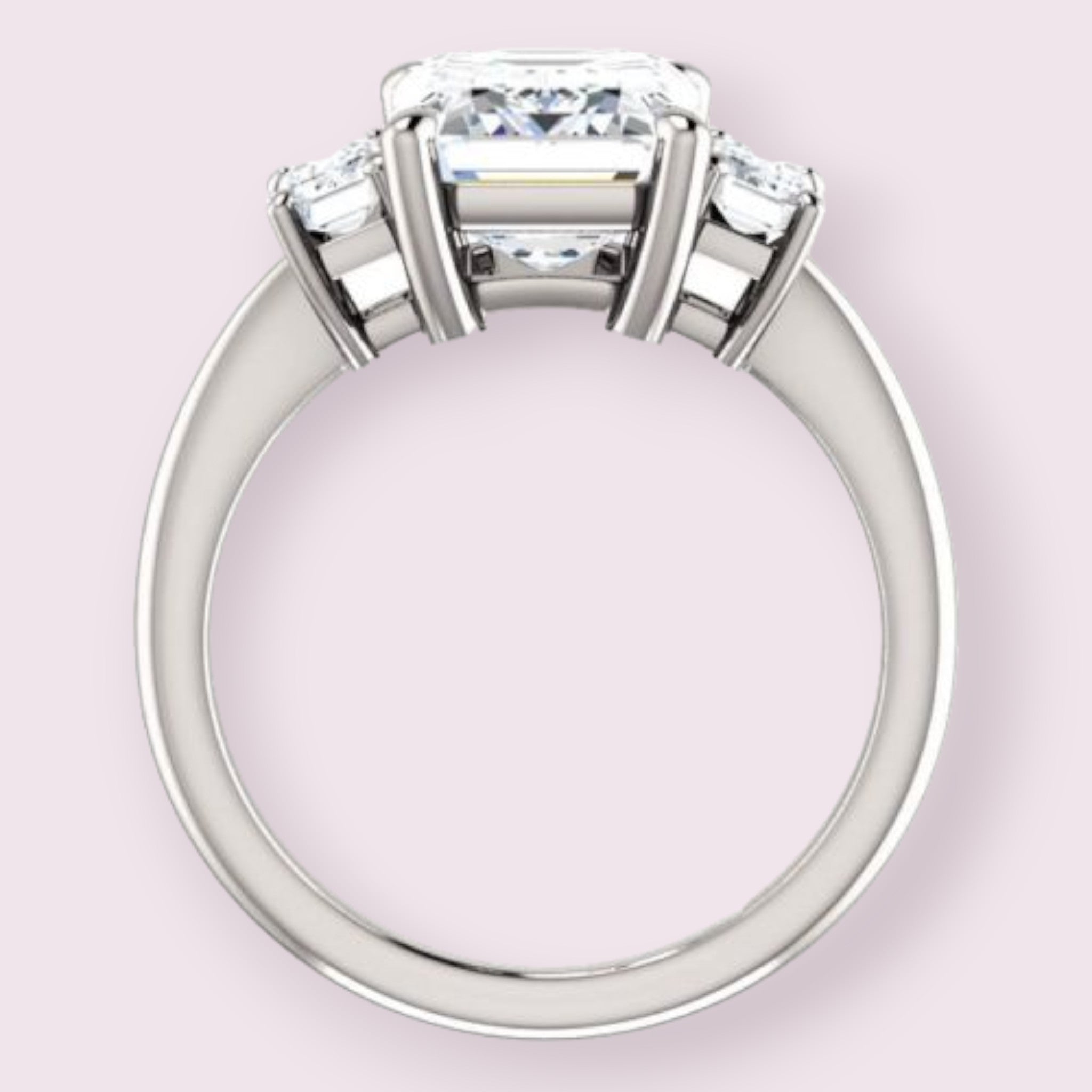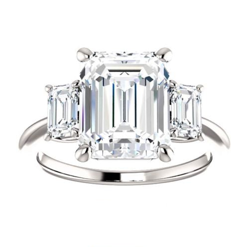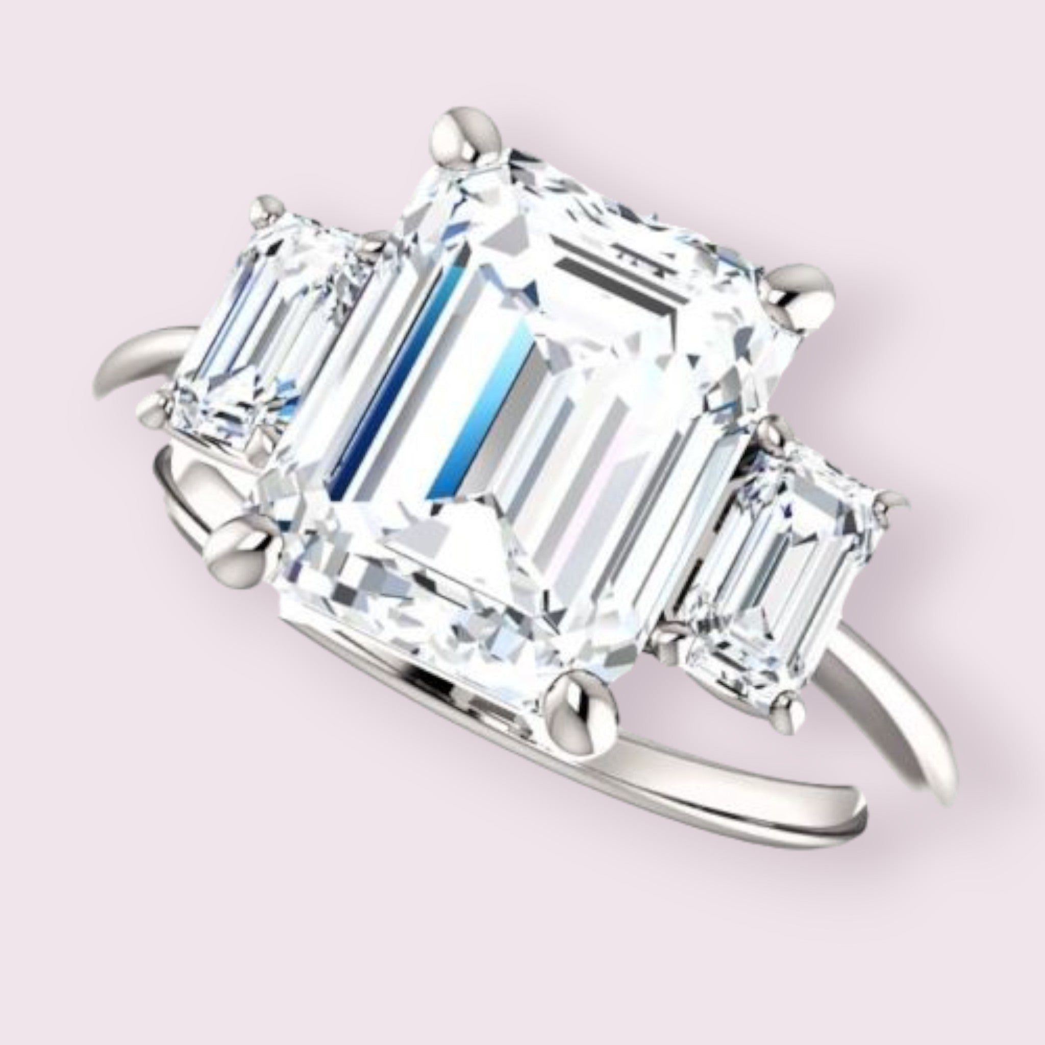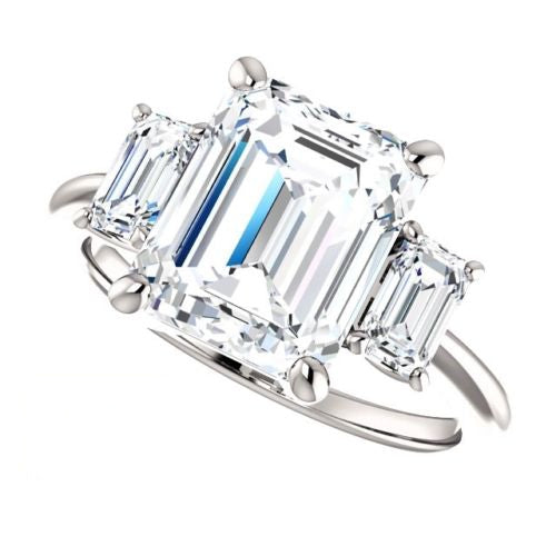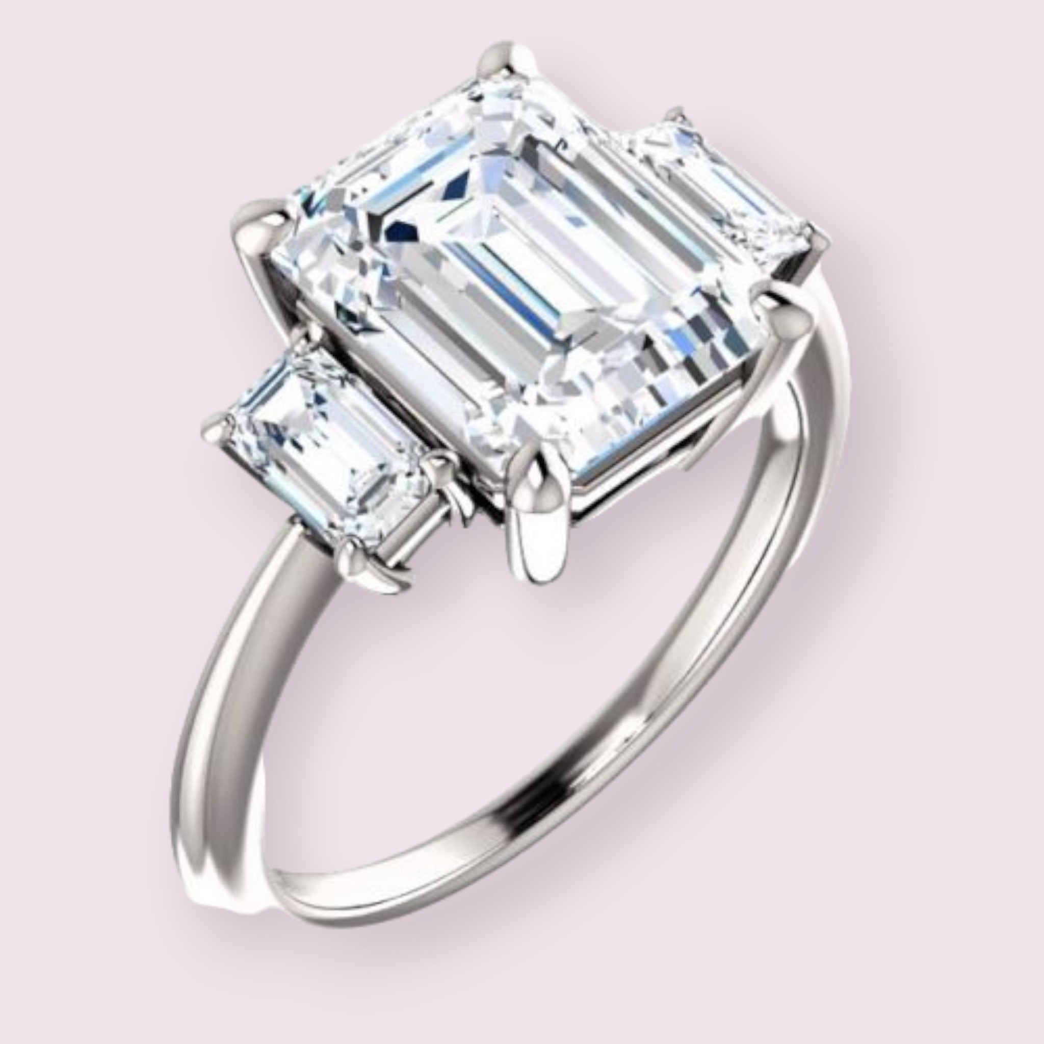 3 Carat Emerald Ring, CVD Lab Grown Diamond Engagement Ring for Women, Three Stone Ring, Handmade Ring, Wedding Ring, Christmas Gifts