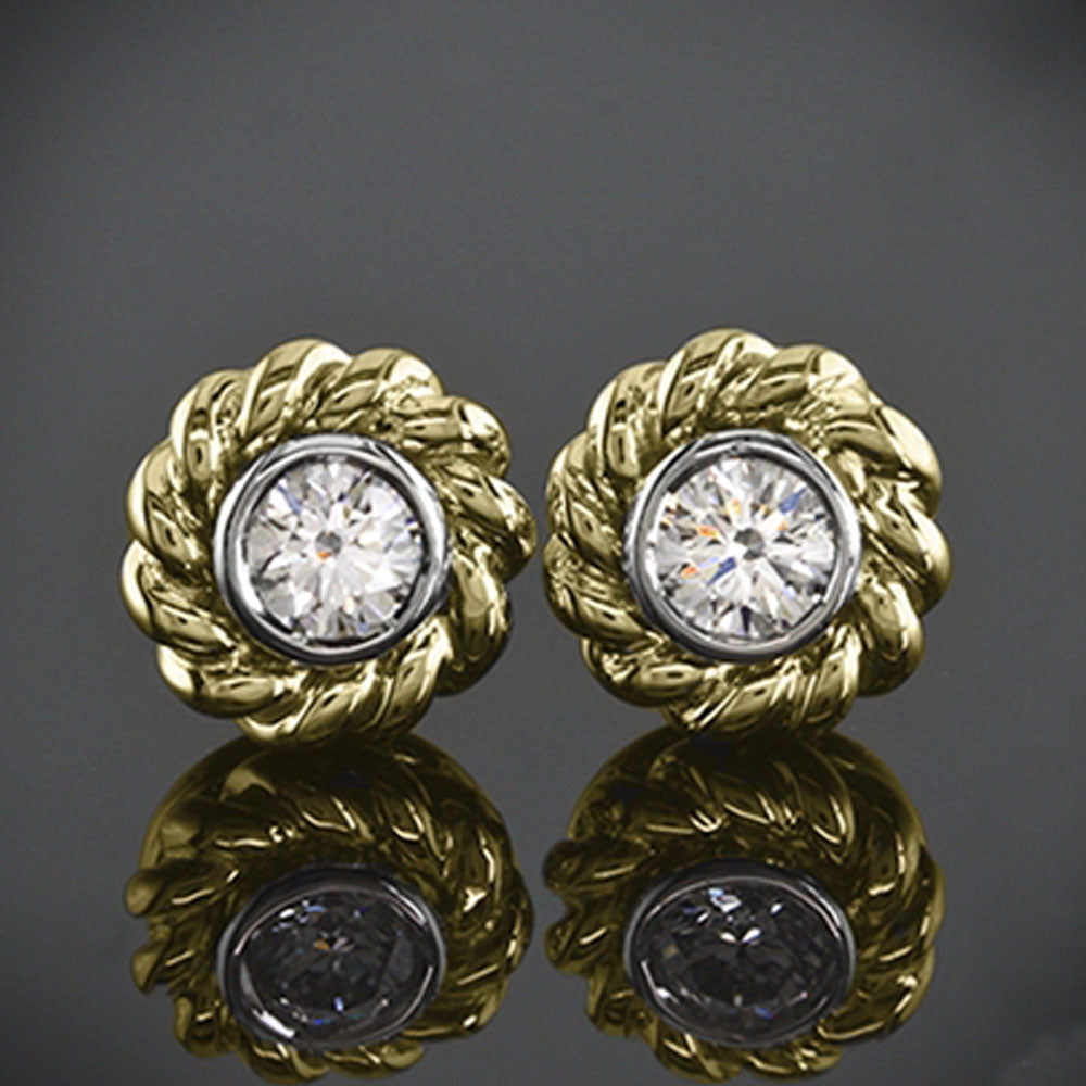 2 TCW Round Cut Diamond Stud Earrings For Women, Bezel Earrings, Unique Earrings, Christmas Gifts, Push Back Earrings