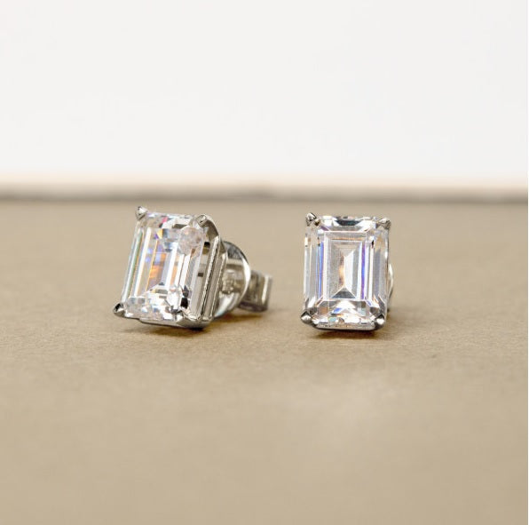 5 TCW Emerald Cut Diamond Stud Earrings For Women, Engagement Earrings, Wedding Earrings, Christmas Gifts