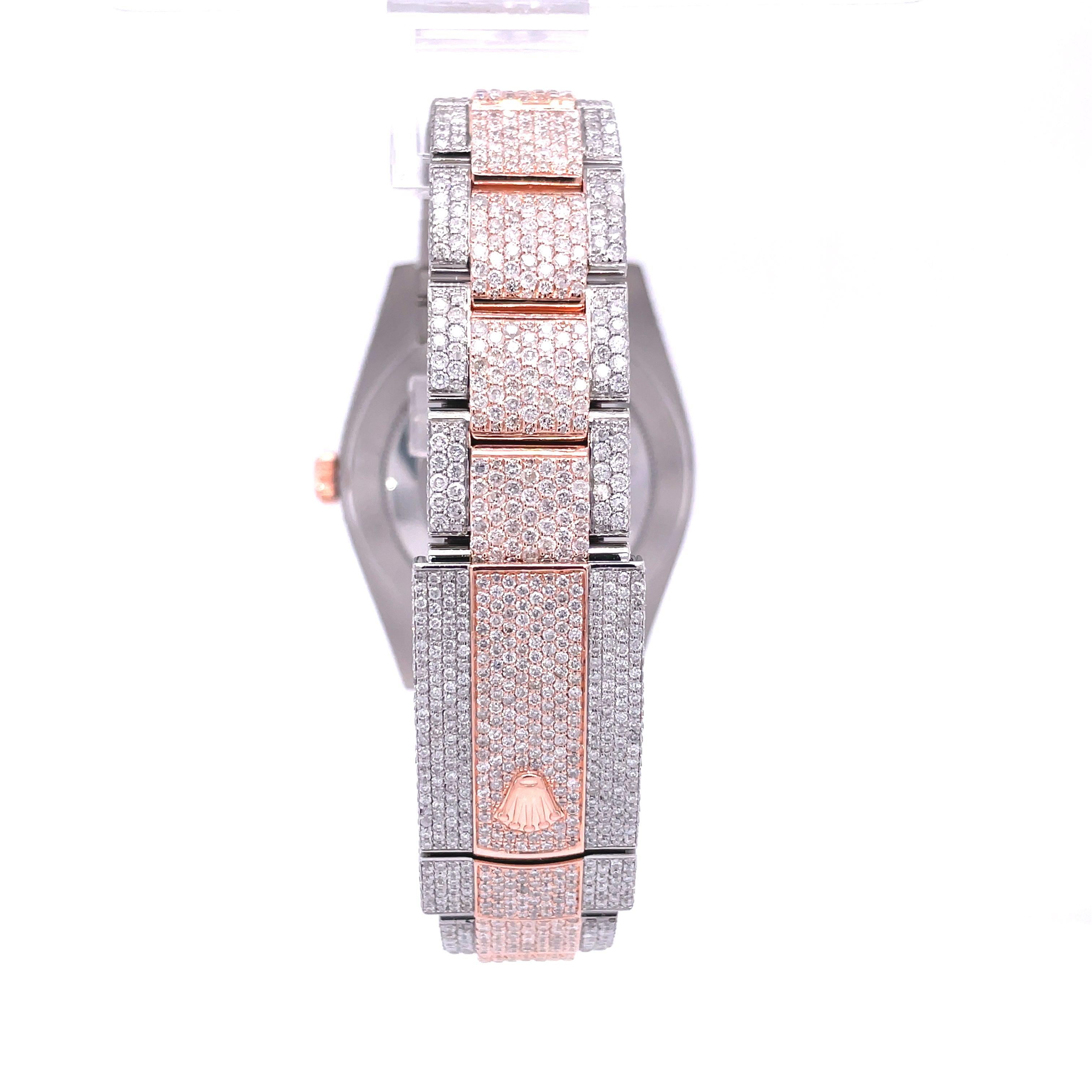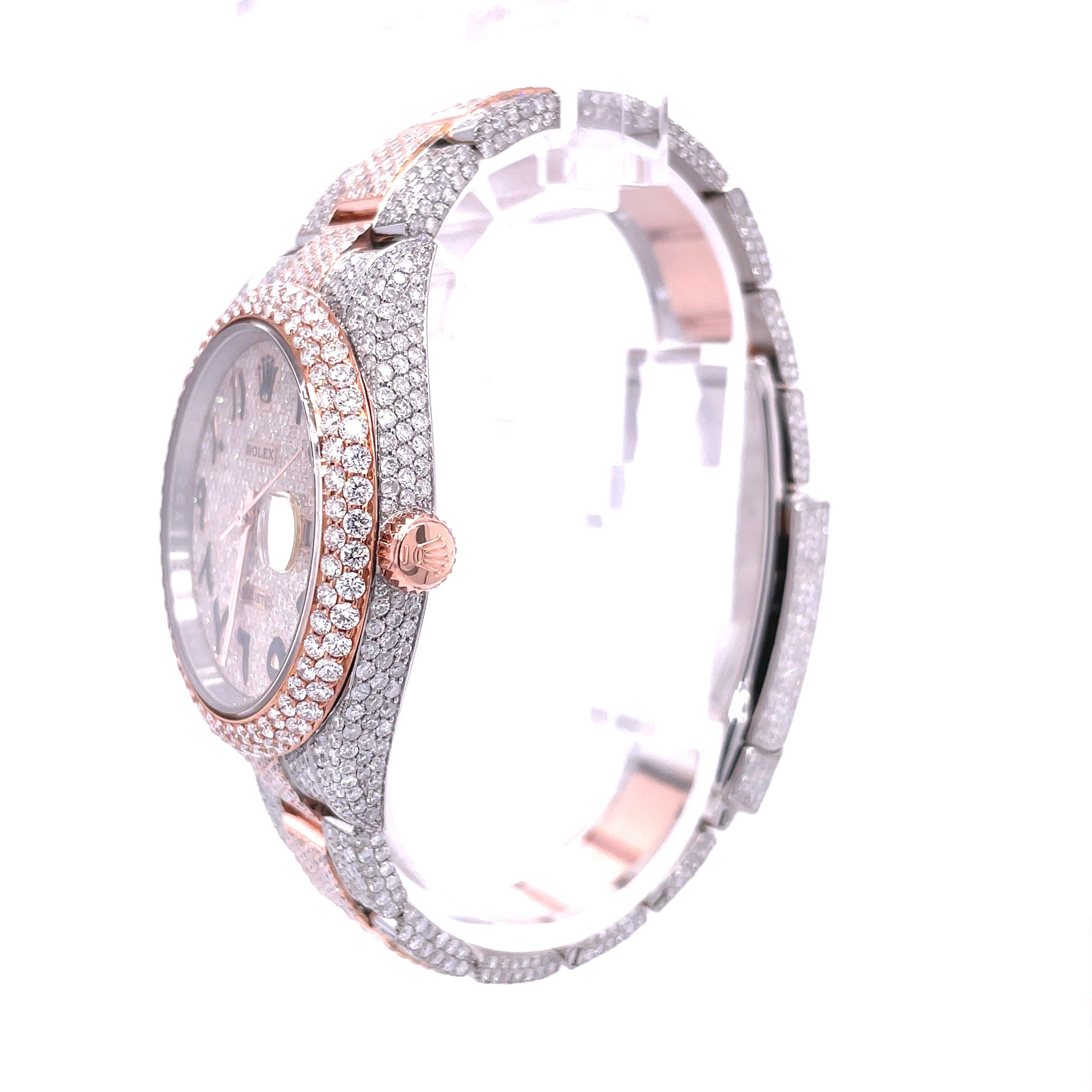 The DJ 41MM is a stunning two-tone Rose Gold watch that exudes luxury and elegance. The watch features a 41MM diameter case with a 22CT diamond bezel, adding a big touch of sparkle to the already impressive design. The dial is white with Arabic numeral hour markers and a date display at the 3 o'clock position. The watch is powered by an automatic movement and has a water resistance of up to 100 meters. The bracelet is a stainless steel oyster with a fold-over clasp. The DJ 41MM is the perfect watch for those who appreciate the finer things in life and want to make a statement with their timepiece.