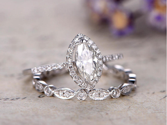 1 Carat Marquise Cut Diamond Engagement Ring for Women, Bridal Set Wedding Ring, Anniversary Gifts For Her