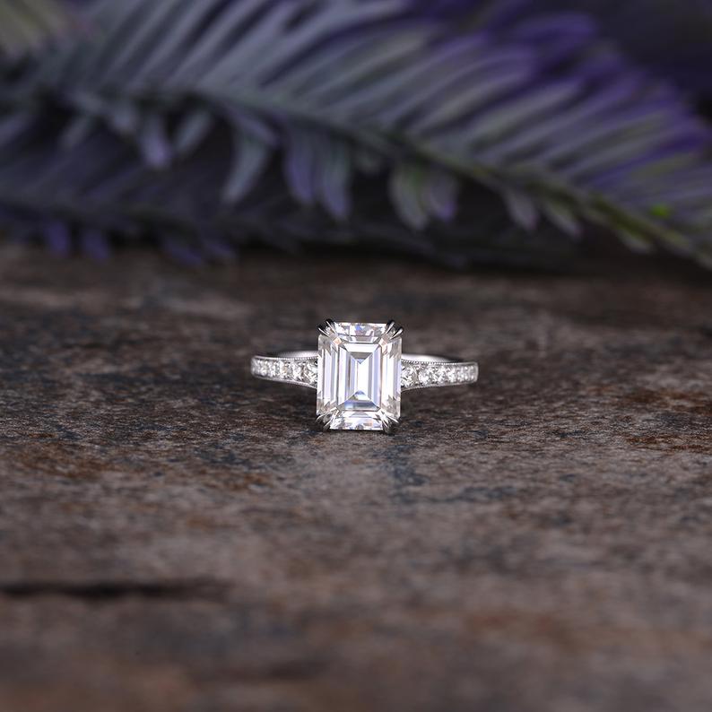 2 Carat Emerald Cut Diamond Engagement Ring for Women, Wedding Ring