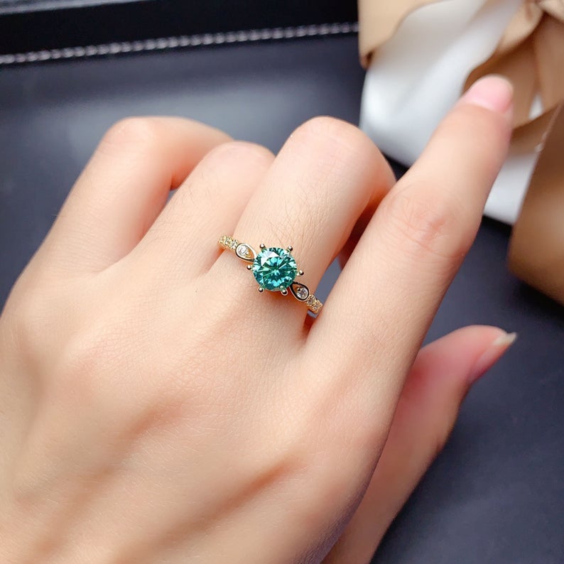 2 Carat Green Round Cut Diamond Engagement Ring for Women, Wedding Ring, Christmas Gifts, Anniversary Gifts For Her