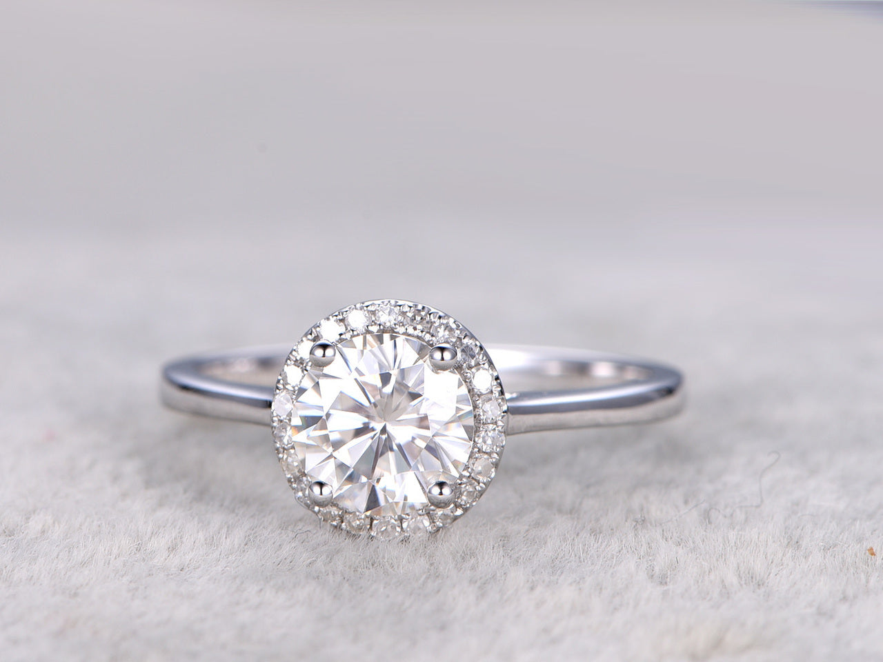 2 Carat Round Cut Diamond Engagement Ring for Women, Halo Ring Set, Wedding Ring