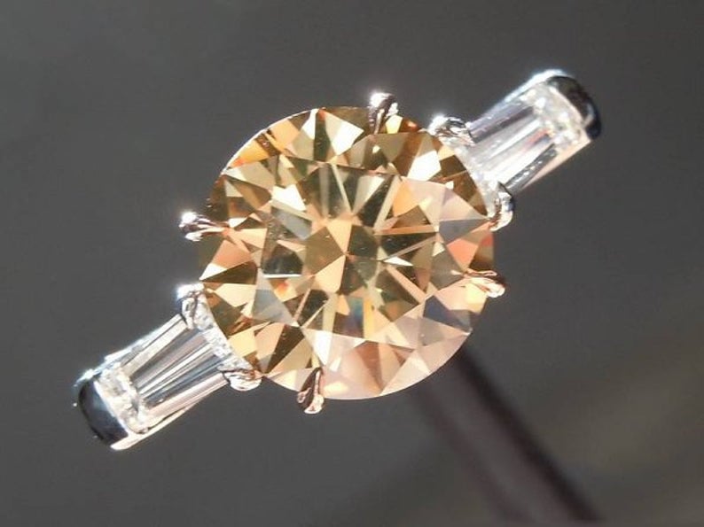 3.5 Carat Brown Round Cut Diamond Engagement Ring for Women, Three Stone Ring, Wedding Ring