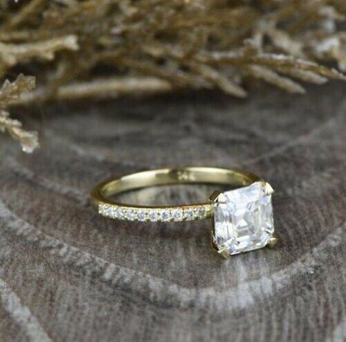 3 Carat Asscher Cut Diamond Engagement Ring For Women, Prong Setting Wedding Ring, Christmas Gifts