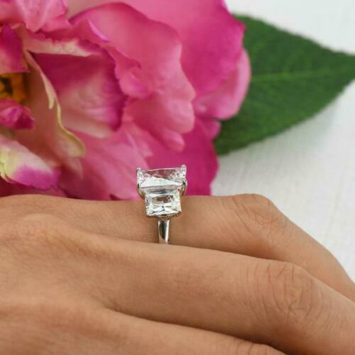 3 Carat Radiant Cut Diamond Engagement Ring For Women, Three Stone Ring, Wedding Ring
