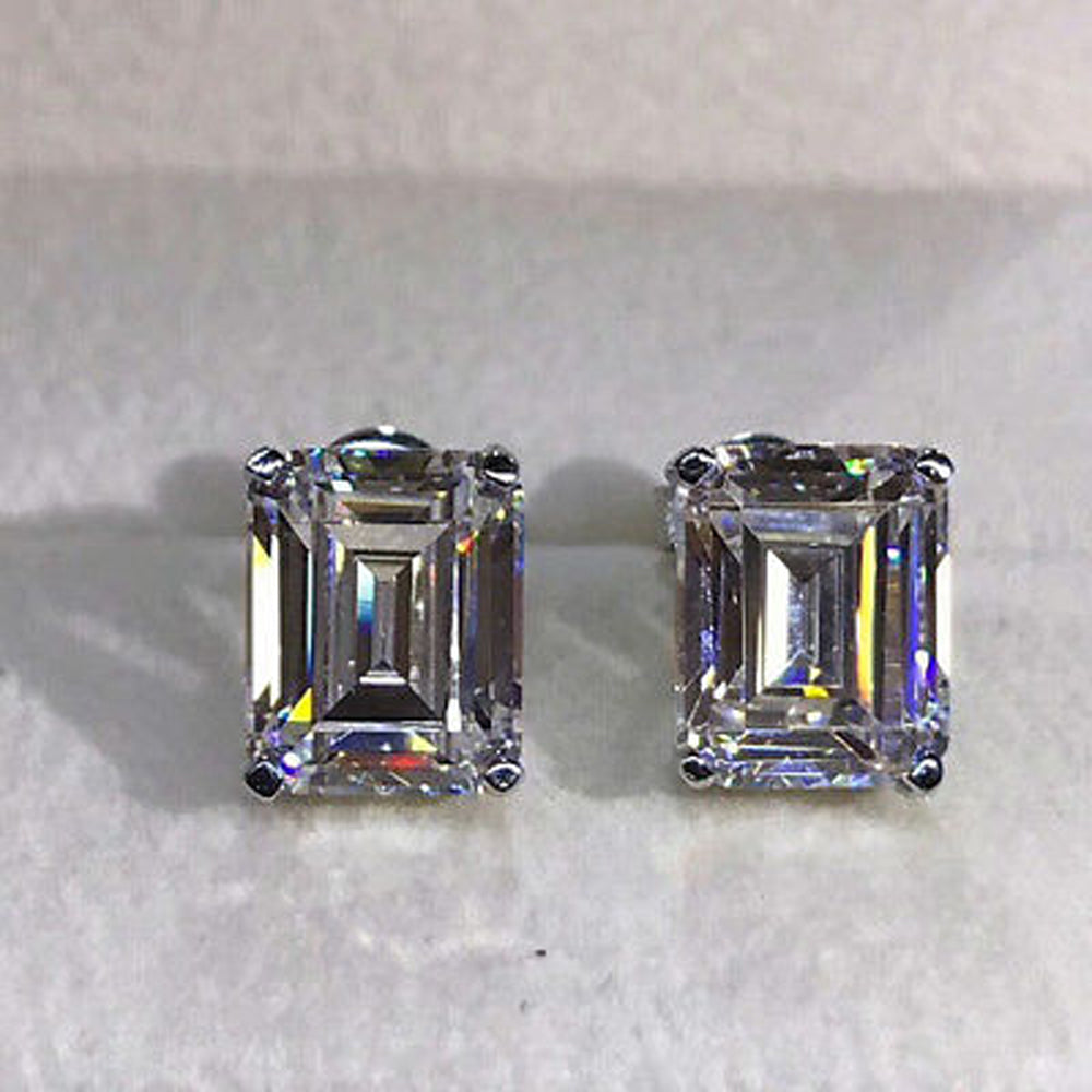 4 TCW Emerald Cut Diamond Stud Earrings For Women, Engagement Earrings, Christmas Gifts, Push Back Earrings